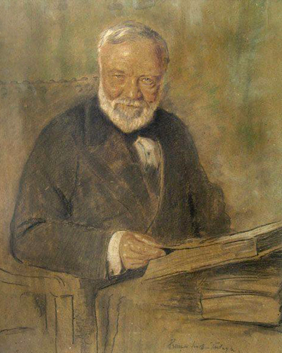 On that occasion, Mr. Tesla first solved the lighting problem, then sat down in an armchair, and began to contemplate the universe. He sat for hours, oblivious to his surroundings. Thus, the painter managed to create a figure whereupon there was no evidence that the sitter was aware of anyone even watching him, let alone studying his facial features from the other side of the easel.